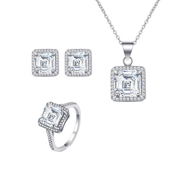 फैशन प्रकाश लक्जरी वर्ग बड़े जिक्रोन लटकन हार चांदी के गहने सेट अंगूठी हार और Earings थोक मूल्य